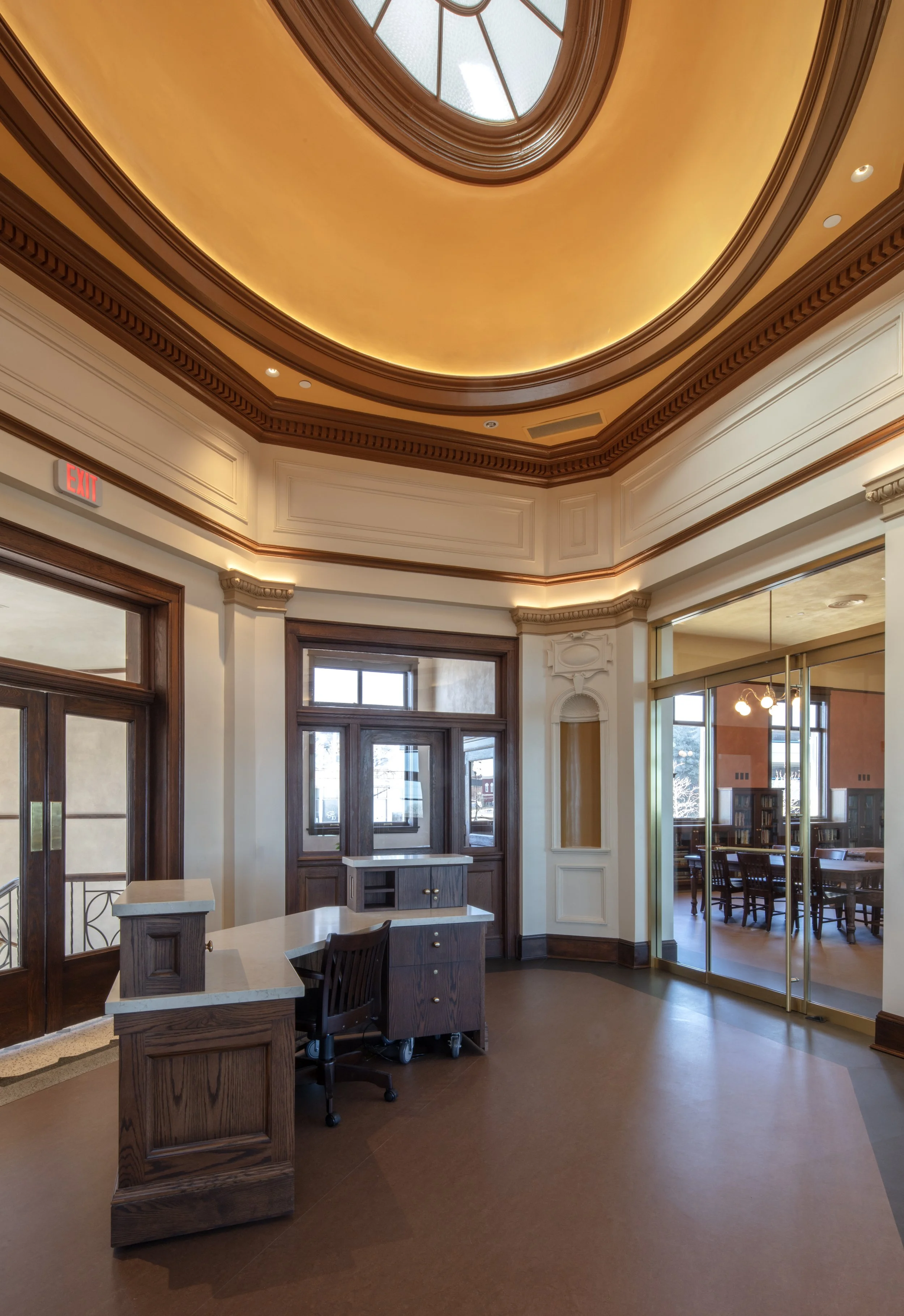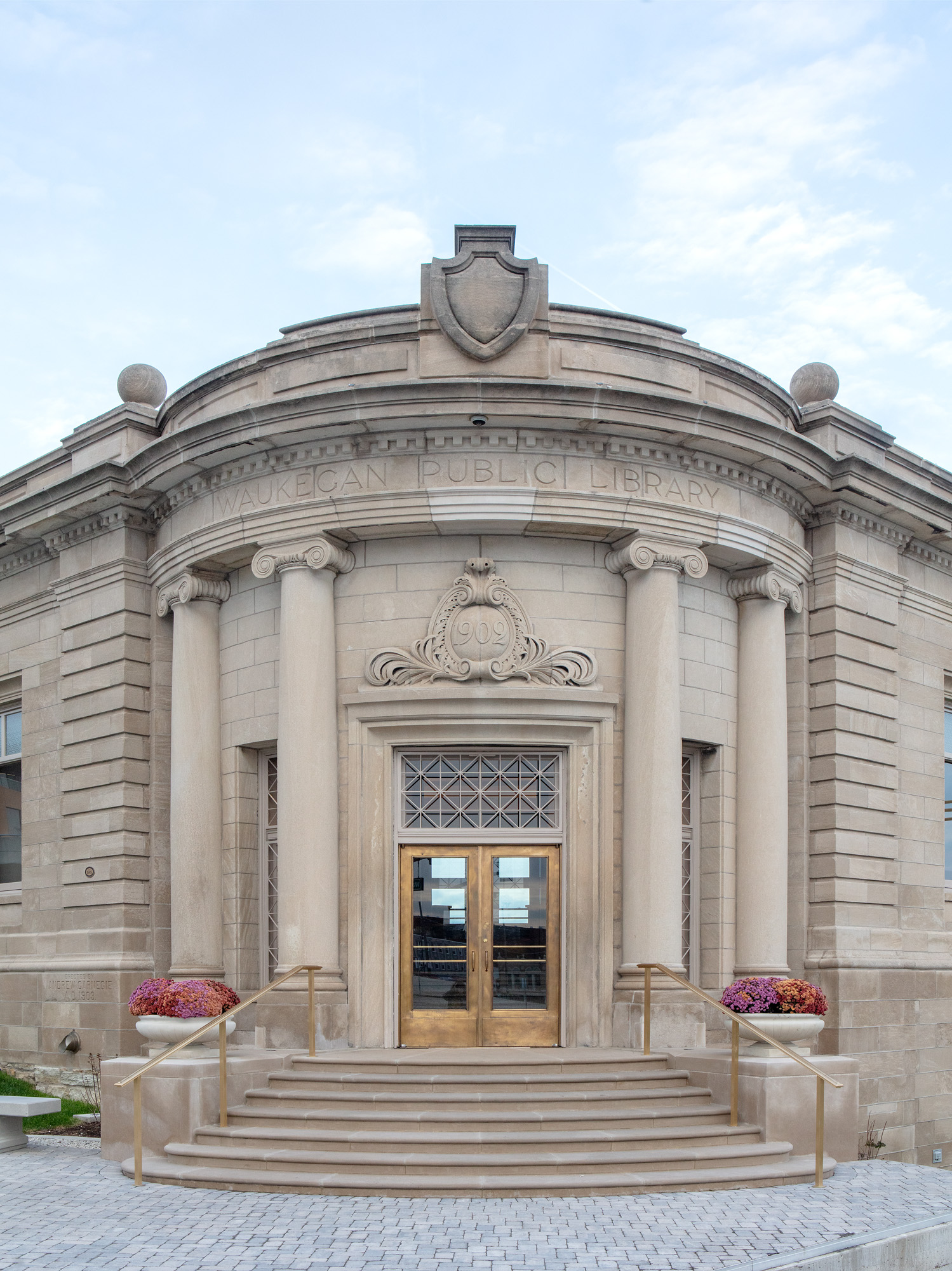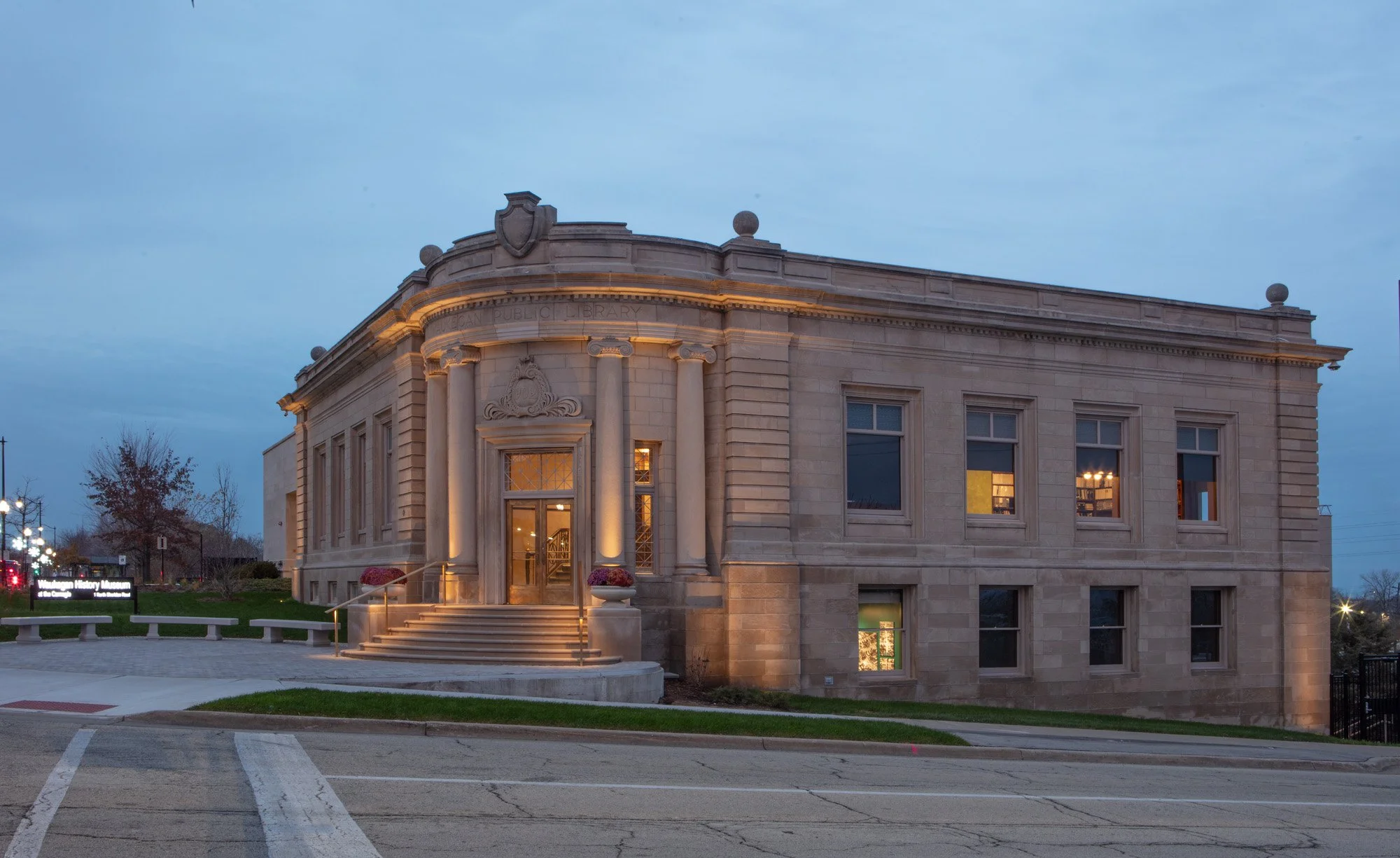 Designed by the firm Patton and Miller and completed in 1903, the Waukegan Public Library sat vacant for approximately 60 years. After a 2018 study to rehabilitate the building for the Waukegan Park District and the Waukegan Historical Society, Harboe Architects developed construction documents to restore the building and construct an addition. The restoration work included the exterior limestone, windows and doors, interior plaster, millwork and trim, and paint finishes. New MEP systems were included and carefully integrated to facilitate the building’s new use as a museum and research library.